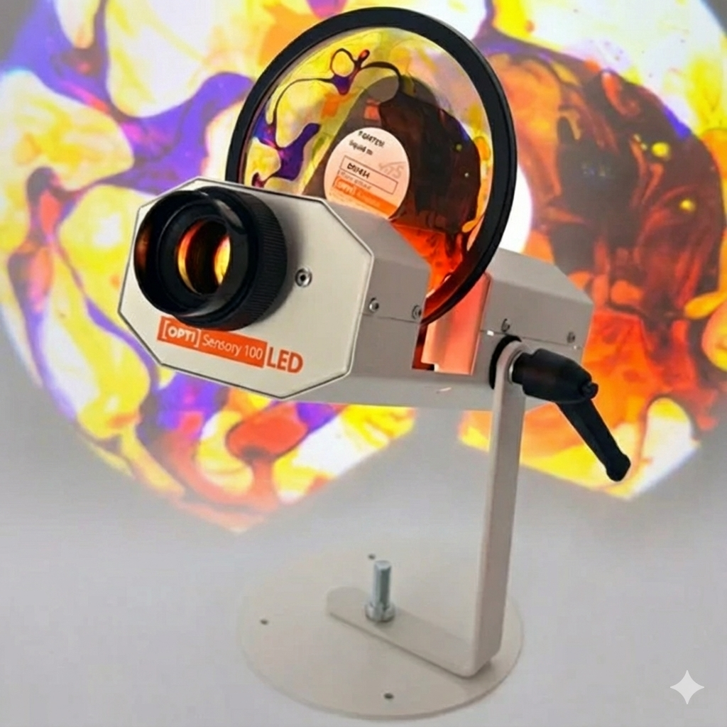 A Wheel or Cassette Rotator is required to attach effects to the Opti Sensory 100 LED Projector.